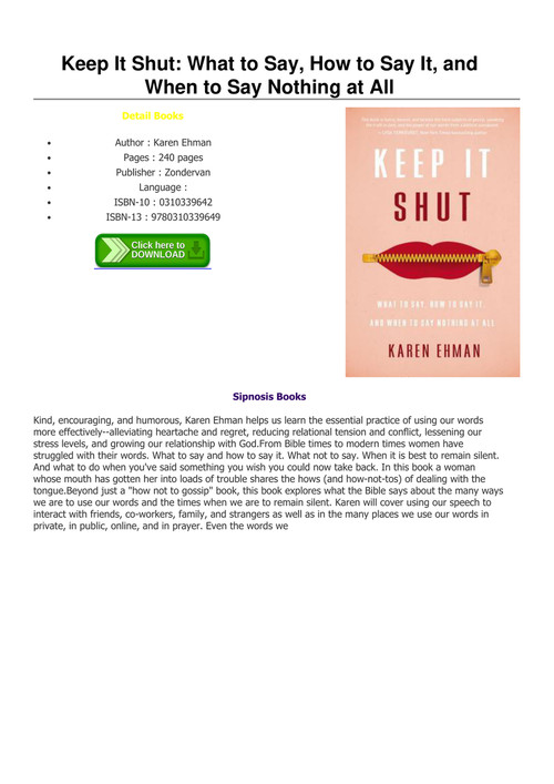 Pdf Download Keep It Shut What To Say How To Say It And When To Say