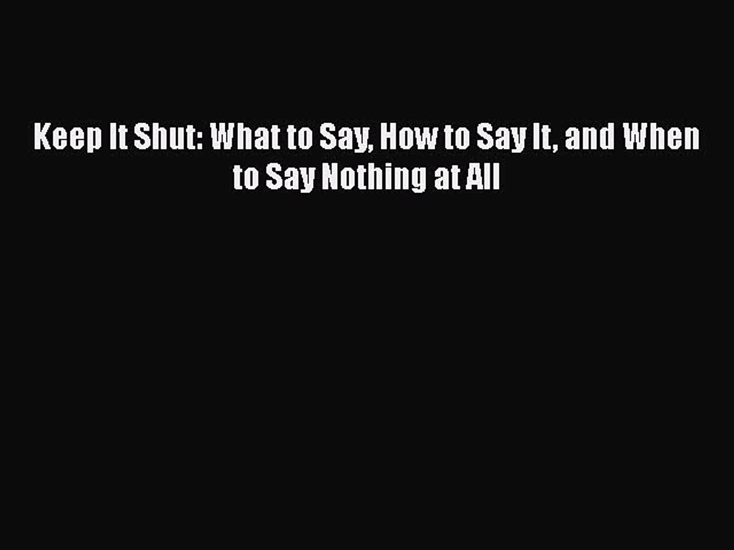 Pdf Download Keep It Shut What To Say How To Say It And When To
